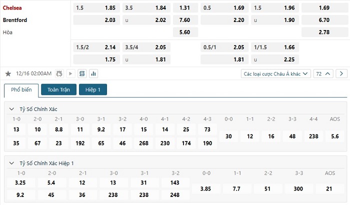 Soi kèo châu Á, kèo chấp Chelsea vs Brentford