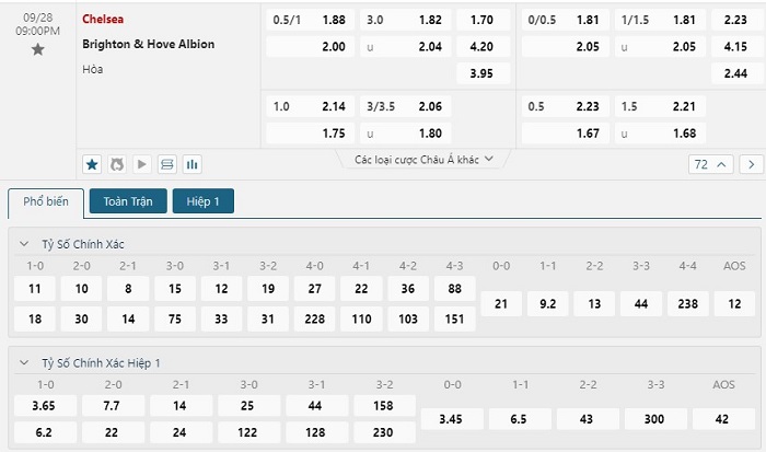 Có được phong độ đang tốt thời gian này cùng với lợi thế về mặt sân nhà giúp Chelsea được đánh giá cao trước Brighton hiện tại, tuy nhiên để có được 3 điểm trọn vẹn với đội bóng thành phố London không phải là nhiệm vụ dễ dàng bởi Brighton là đối thủ vốn cũng rất khó nhằn ở thời điểm này, bên cạnh đó phong độ sân nhà của Chelsea ở mùa giải năm nay lại chưa thực sự tốt khi họ chưa thắng ở 2 vòng đấu của mình tại mùa giải, vì vậy mà Brighton mới là lựa chọn đáng tin theo kèo châu Á.
