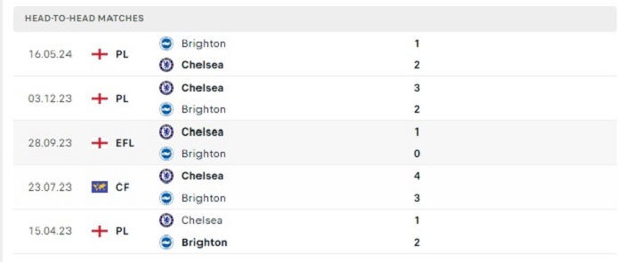 Thống kê có thể thấy được 4 trong 5 lần gặp nhau gần đây giữa Chelsea và Brighton có được tỷ lệ ghi bàn tương đối cao, điều này có thể thấy được giữa hai đội vẫn luôn thể hiện được lối chơi đầy phóng thoáng của mình, mặt khác hiện tại cả Chelsea và Brighton đều đang có hàng công thi đấu khá bùng nổ ở giai đoạn gần đây cũng là lý do để có thể tiếp tục đặt niềm tin vào một trận đấu bùng nổ về mặt tỷ số của cả hai đội.