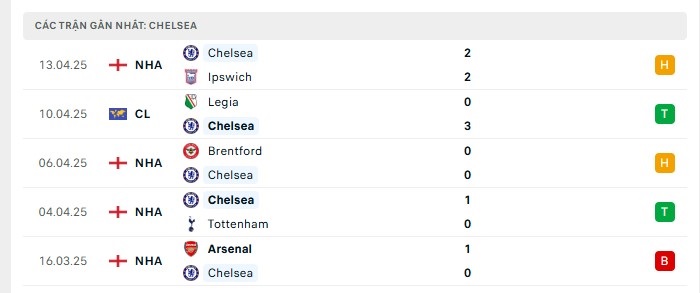- Phong độ Chelsea