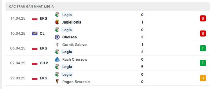 - Phong độ Legia Warszawa
