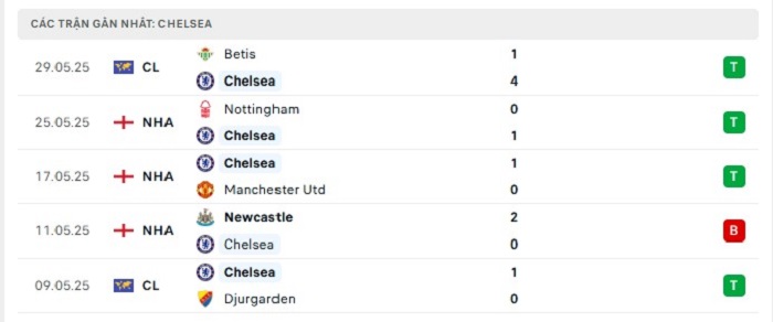 - Phong độ Chelsea