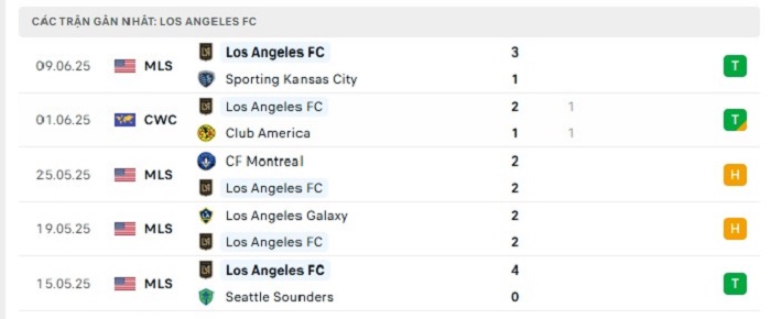 - Phong độ Los Angeles FC
