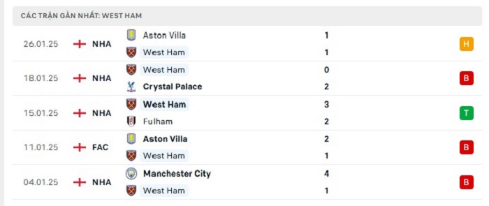 • Phong độ West Ham
