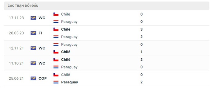 Phong độ gần đây Chile vs Paraguay