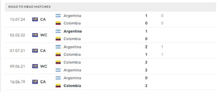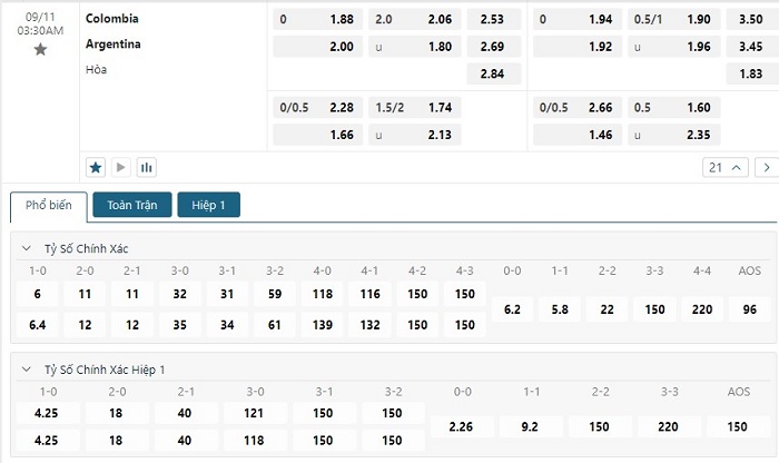 Bảng tỷ lệ kèo bóng đá trận đấu Colombia vs Argentina