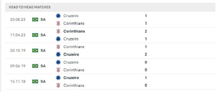 Lịch sử đối đầu của Cruzeiro vs Corinthians