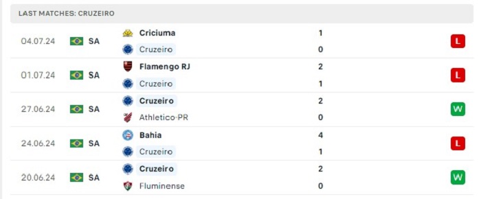 • Phong độ Cruzeiro