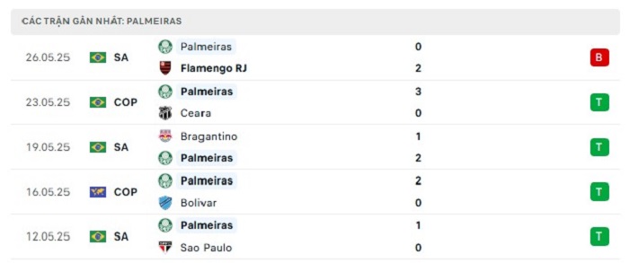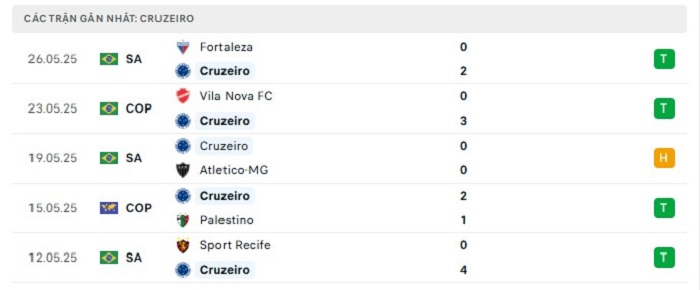 Phong độ gần đây Cruzeiro vs Palmeiras