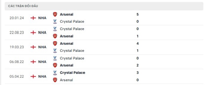Lịch sử đối đầu của Crystal Palace vs Arsenal