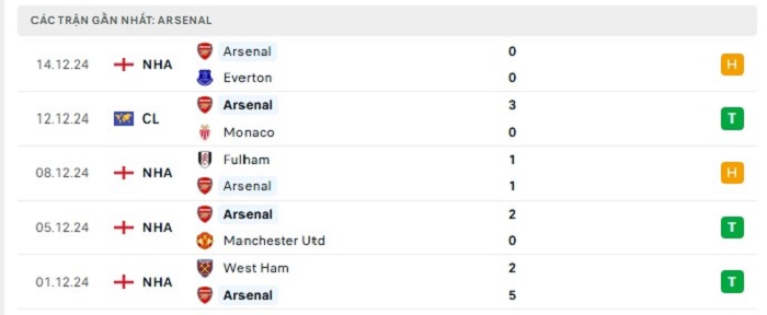 Bảng  bóng đá trận đấu Crystal Palace vs Arsenal