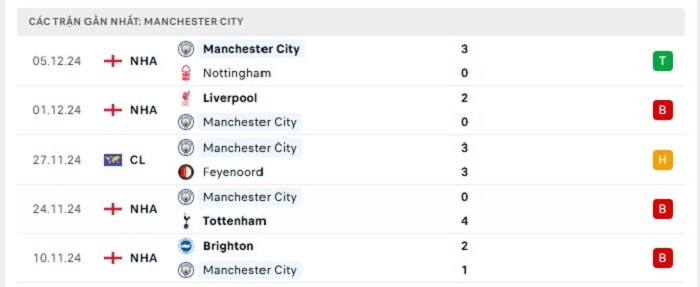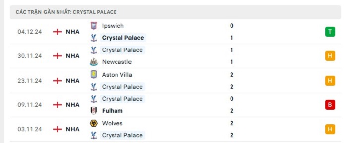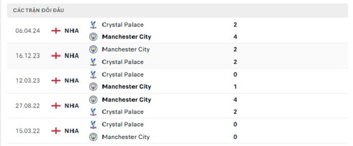 Bảng bóng đá trận đấu Crystal Palace vs Manchester City
