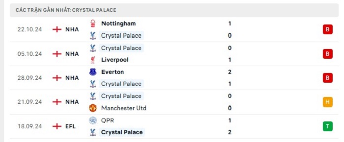 • Phong độ Crystal Palace