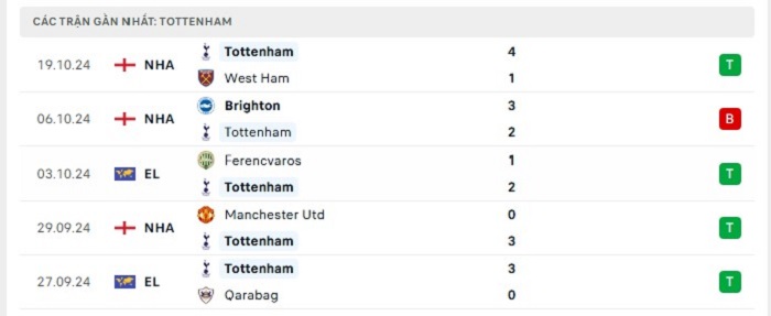 • Phong độ Tottenham