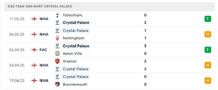 • Phong độ Crystal Palace