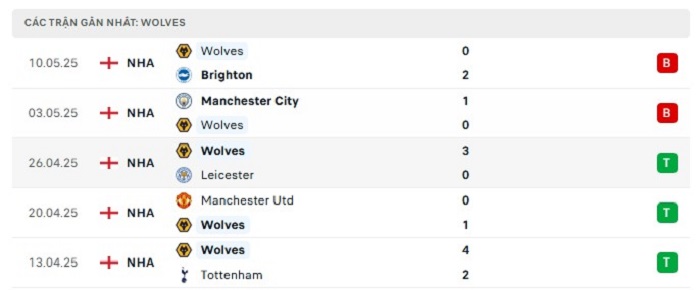 • Phong độ Wolves