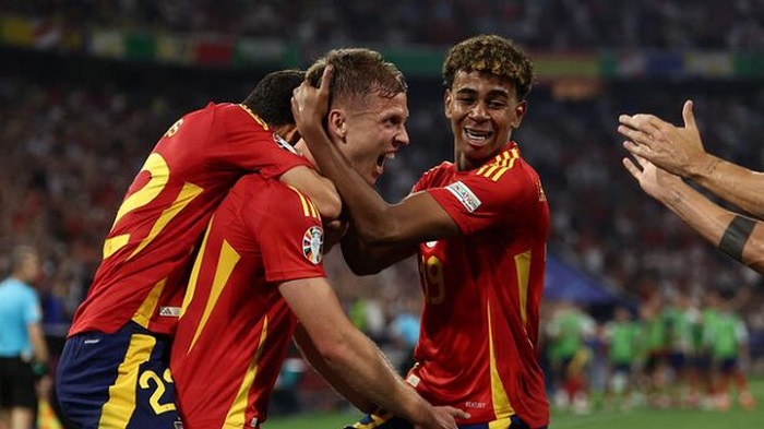 Tây Ban Nha: Raya, Porro, Laporte, Cubarsi, Cucurella, Zubimendi, Ruiz, Yamal, Pedri, Oyarzabal, Morata.