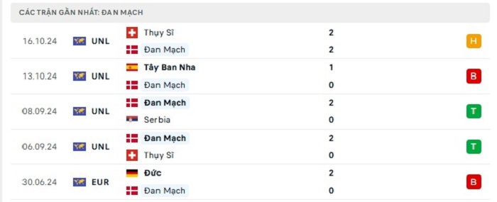 Phong độ gần đây Đan Mạch vs Tây Ban Nha