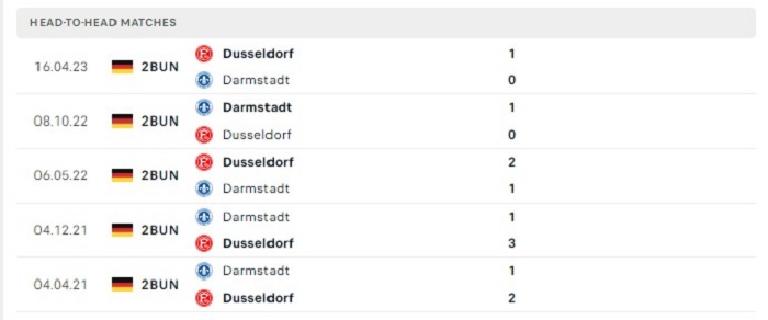 Lịch sử đối đầu của Darmstadt vs Fortuna Dusseldorf