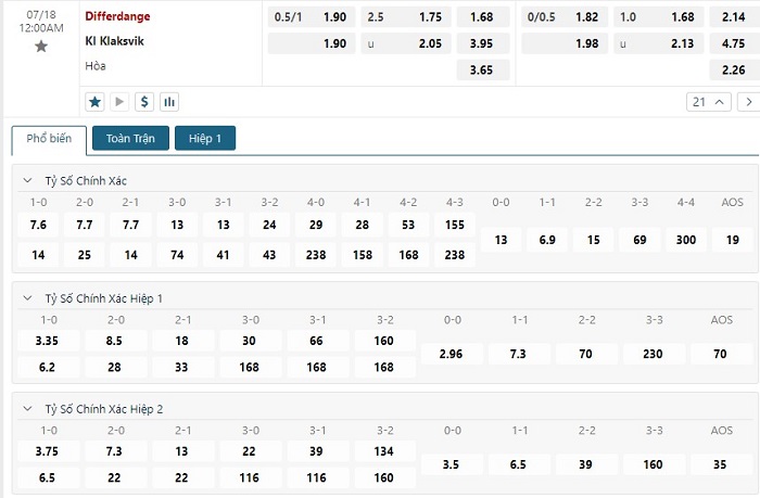 Bảng tỷ lệ kèo bóng đá trận đấu Differdange vs KI Klaksvik