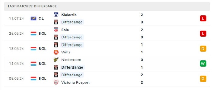 Phong độ gần đây Differdange vs KI Klaksvik