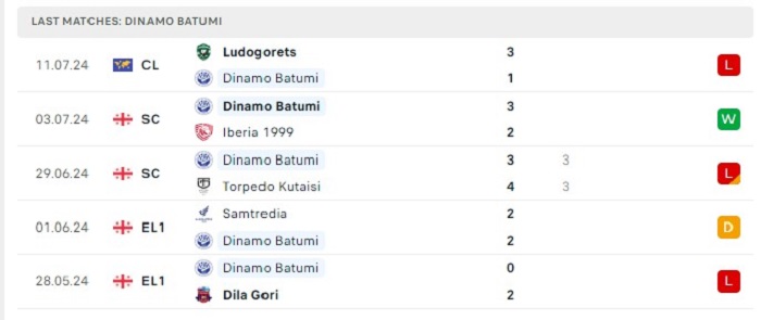 • Phong độ Dinamo Batumi