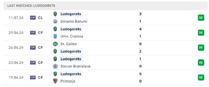 • Phong độ Ludogorets Razgrad
