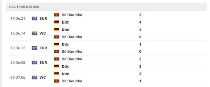 Phong độ gần đây Đức vs Bồ Đào Nha