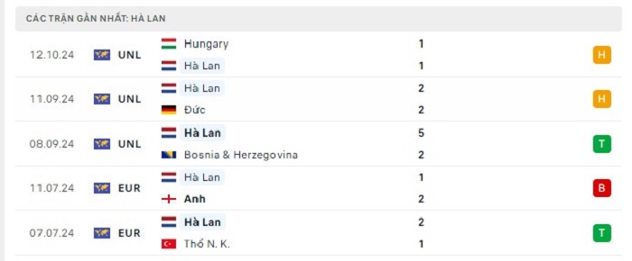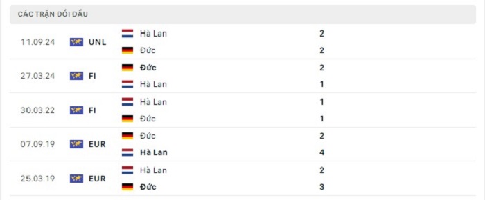 Phong độ gần đây Đức vs Hà Lan