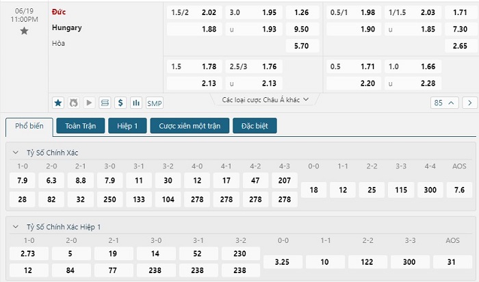 Bảng tỷ lệ kèo bóng đá trận đấu Đức vs Hungary