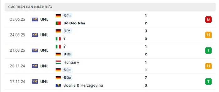 Phong độ gần đây Đức vs Pháp