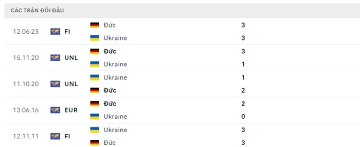 Ukraine cũng là cái tên từng khiến người hâm mộ đội tuyển Đức phải lo ngại. Thực tế Đức mặc dù vẫn có được những ưu thế đối đầu khi bất bại trước Ukraine khi thắng 3 trong 5 trận. Dù vậy cả 2 trận đấu mà Ukraine có được điểm số trước Đức đều là những trận đấu mang tính chất giao hữu của cả hai đội. Vì vậy không loại trừ khả năng trận đấu sắp tới giữa Đức và Ukraine lại một lần nữa có kết quả hòa theo kèo châu Âu cả trận.