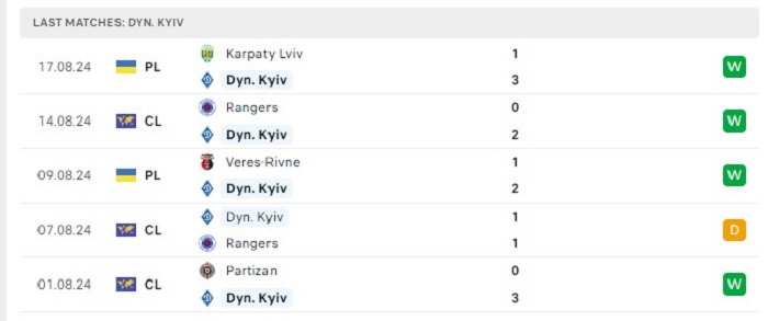 • Phong độ Dynamo Kyiv