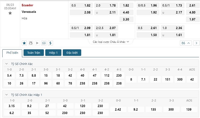 Bảng tỷ lệ kèo bóng đá trận đấu Ecuador vs Venezuela