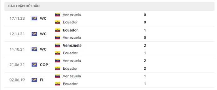 Lịch sử đối đầu của Ecuador vs Venezuela