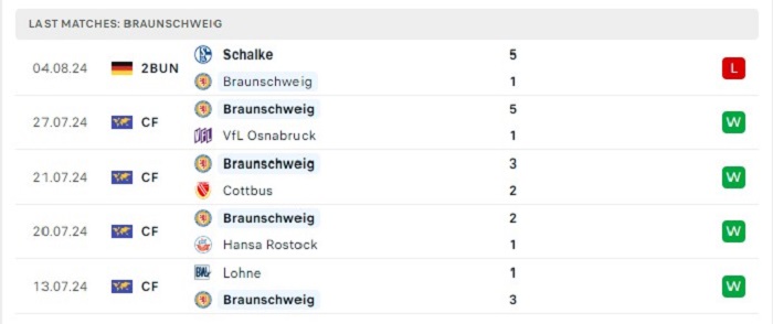 • Phong độ Eintracht Braunschweig