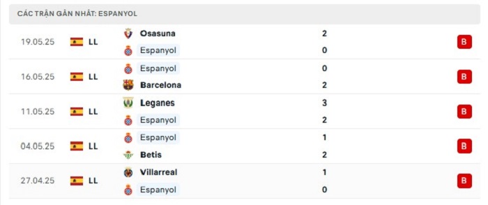 - Phong độ Espanyol