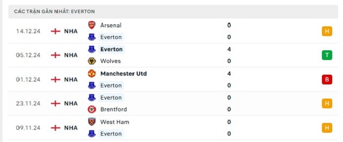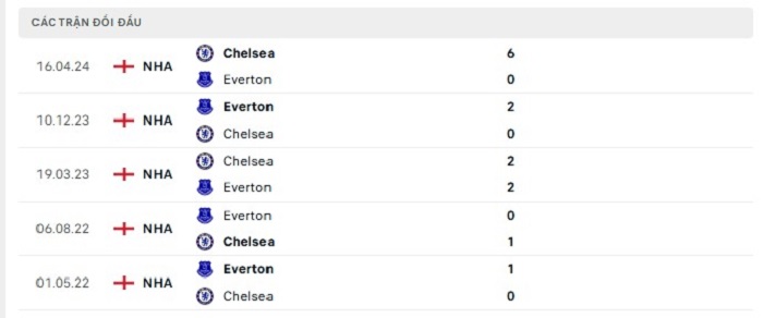 Bảng  bóng đá trận đấu Everton vs Chelsea