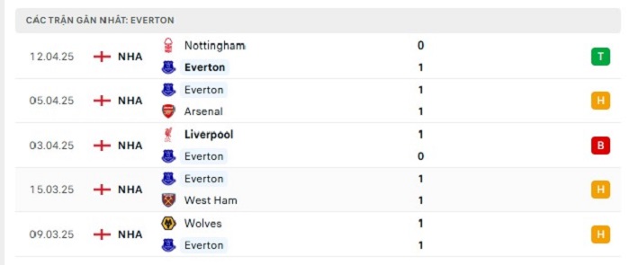 - Phong độ Everton