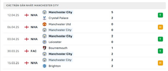 - Phong độ Manchester City