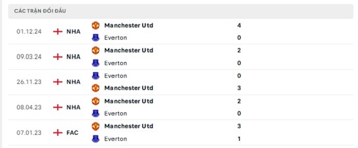 Lịch sử đối đầu của Everton vs Manchester United