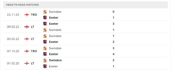 Tỷ lệ ghi bàn trong các trận đối đầu giữa Exeter và Swindon tương đối cao, điều này cũng có thể nhận thấy được khi có tới 4 trong 5 trận gặp nhau gần đây của hai đội đã xuất hiện từ 3 bàn thắng ghi được trở lên. Hàng công của Exeter đang thi đấu khá tốt nhưng họ cũng có hàng thủ thi đấu không quá chắc chắn trong những trận đấu gần đây của mình, bởi vậy mà tỷ số trận đấu hoàn toàn có thể xuất hiện nhiều trong trận gặp nhau sắp tới.