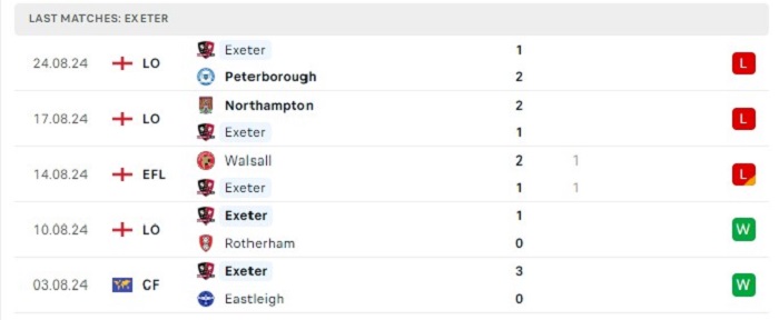 Phong độ gần đây Exeter vs Swindon