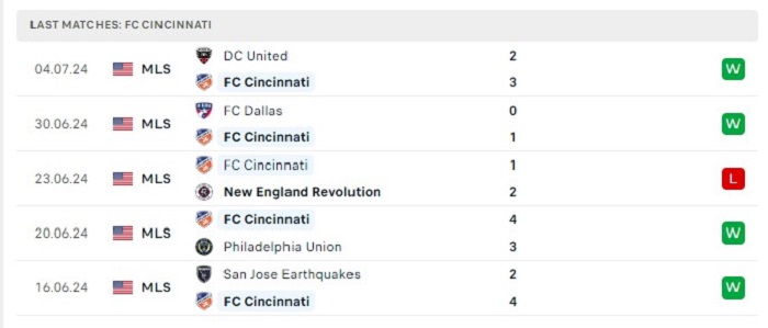 • Phong độ FC Cincinnati