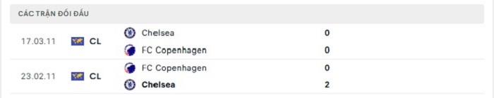 Lịch sử đối đầu của FC Copenhagen vs Chelsea