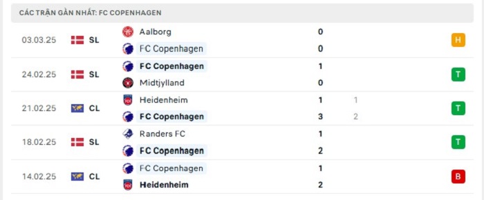 Phong độ gần đây FC Copenhagen vs Chelsea