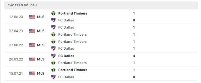 Lịch sử đối đầu của FC Dallas vs Portland Timbers