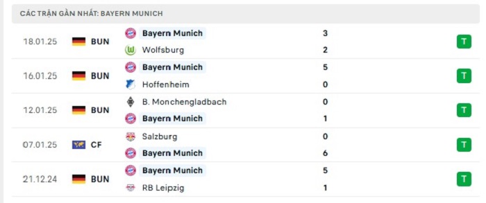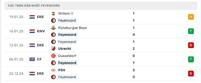Phong độ gần đây Feyenoord vs Bayern Munich