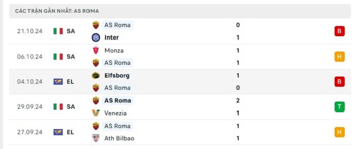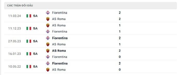 Bảng bóng đá trận đấu Fiorentina vs AS Roma