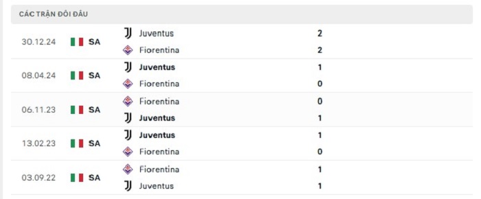 Bảng bóng đá trận đấu Fiorentina vs Juventus